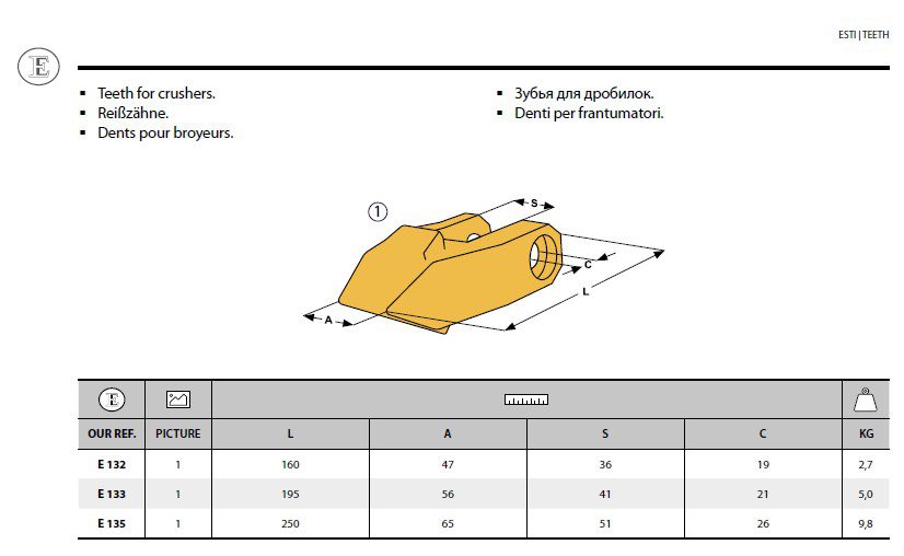 Slidstærk knusertand til betonknuser.