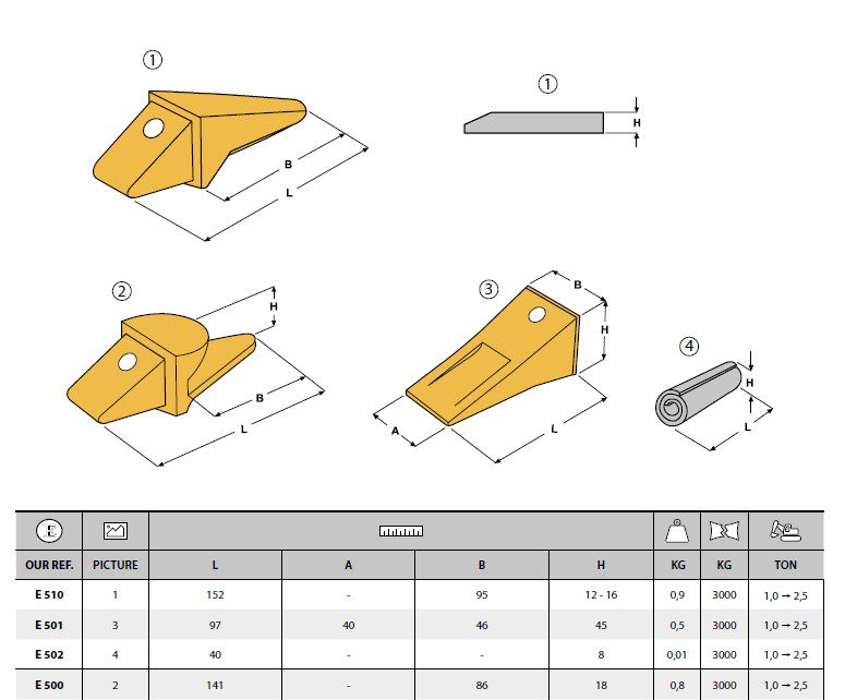 Slidstærke tandhætter og adaptere til minigraveren og minilæsseren