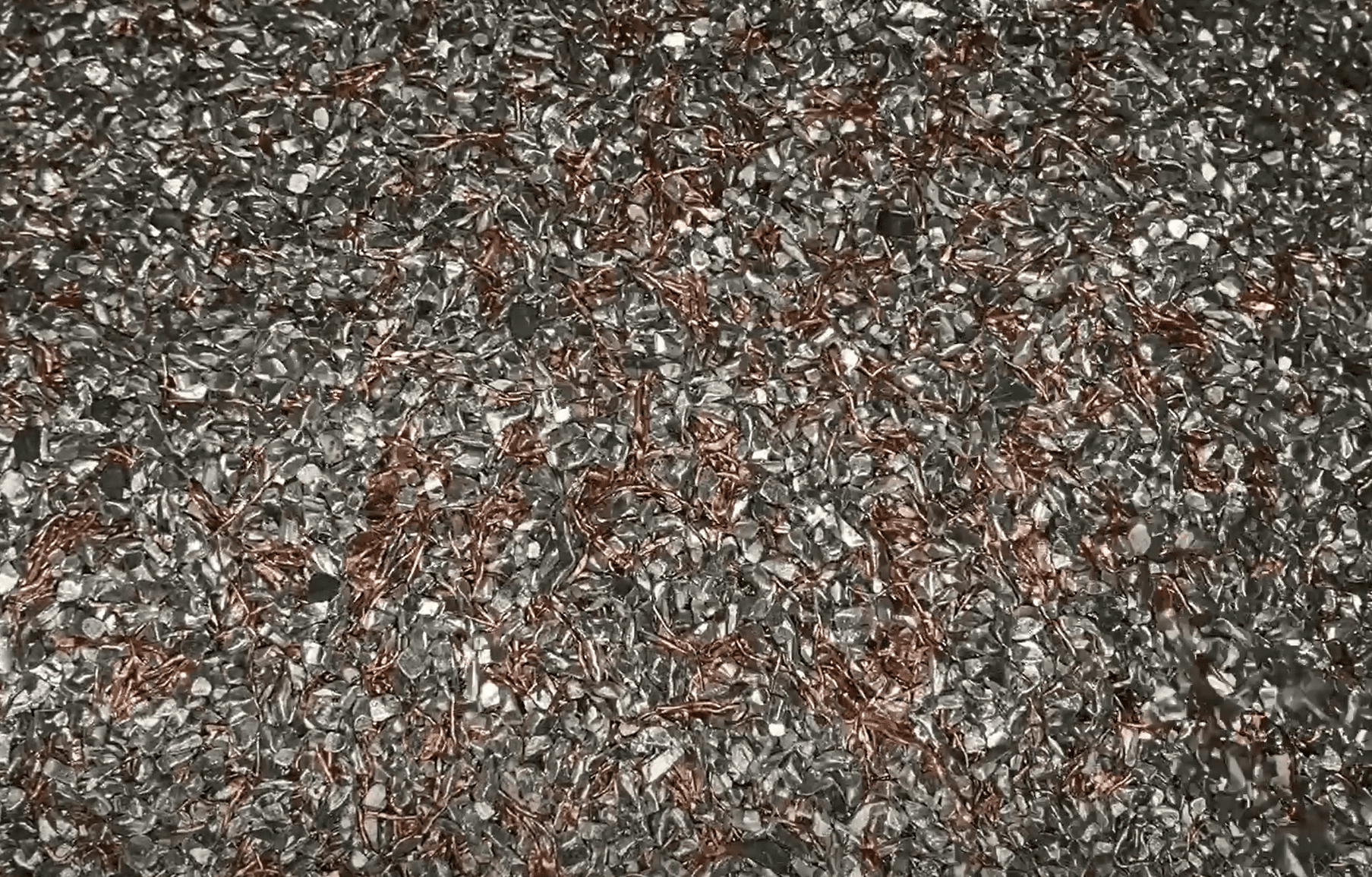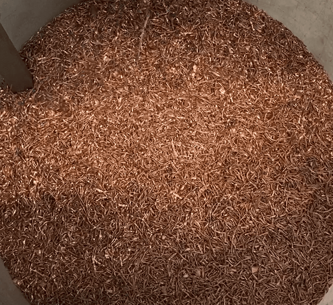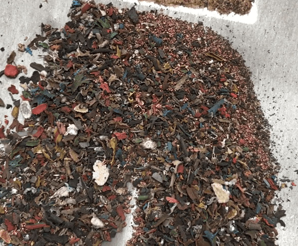 Afhængig af maskiner og kabeltyper kan man ende op med forskellige variationer af fraktioner. Her er et eksempel på en blanding af kobber og aluminium – også fra kabler.