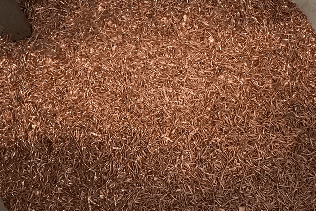 Afhængig af maskiner og kabeltyper kan man ende op med forskellige variationer af fraktioner. Her er et eksempel på en blanding af kobber og aluminium – også fra kabler.
