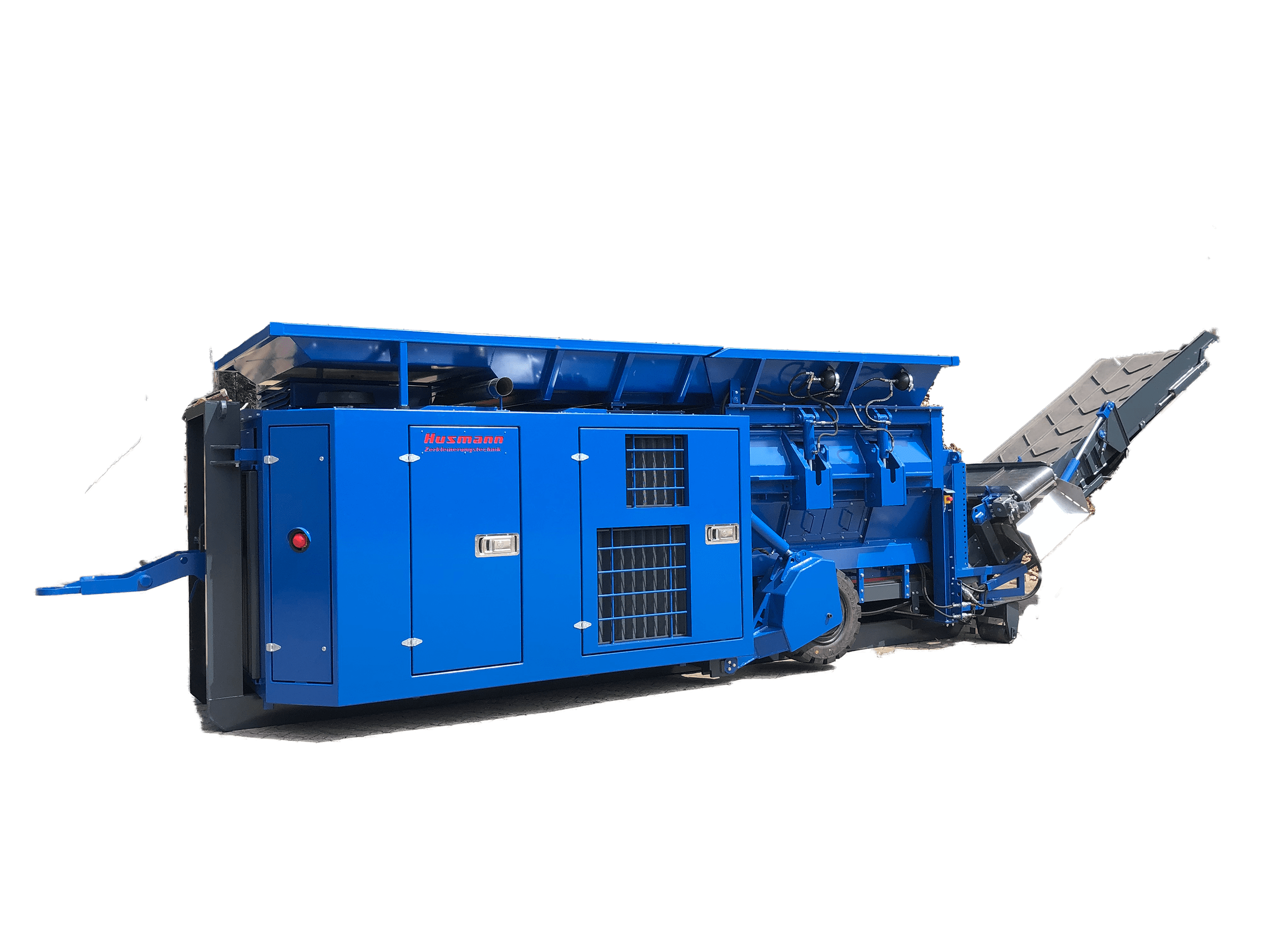 Maskinerne fås i både stationære og mobile varianter, så affaldet kan forbehandles dér, hvor det opstår – fx direkte på genbrugspladser, nedrivningsopgaver eller ved storskraldsindsamling.